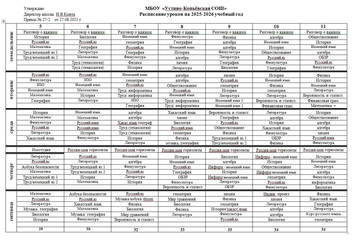 Расписание